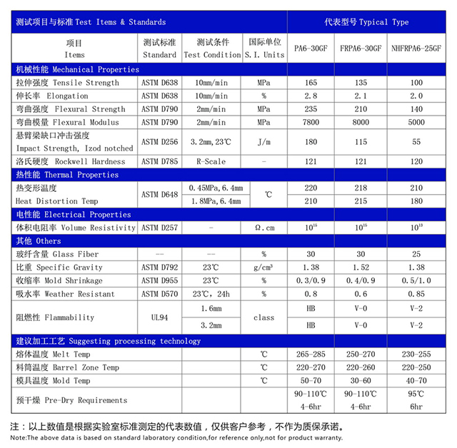 Modified Features: Reinforced, flame retardant reinforced and halogen-free flame retardant